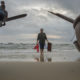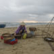 Je décide ensuite de me déplacer un peu pour essayer d’avoir une autre vision de cette scène. Je n’ai pas envie d’avoir tout le temps la même photo avec les mamies au bord de l’eau (problème similaire qu’on peut avoir dans un marché flottant, avec un peu tout le temps les mêmes photos ! il faut arriver à varier et c’est pas toujours facile). J’ai quelques marchands un peu seuls au bout de la plage, ça fera l’affaire.