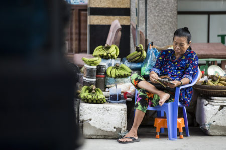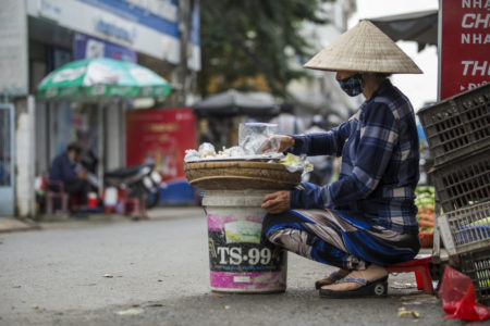 Je parle de mon « pèlerinage » en ce début d’article car en venant à Can Tho j’ai vraiment mon chemin du matin, je combine à chaque fois ces 2 marchés (flottant & terrestre) et je m’y sens terriblement bien. En plus le terrestre est presque plus photogénique que le flottant. Comme souvent je marche directement jusqu’à mon petit-déjeuner, sur le chemin je fais quelques photos des mamies.